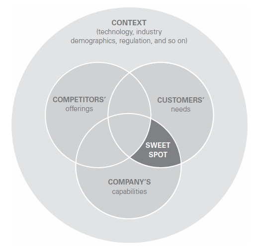 Describe the diagram with the “marketing strategy sweet spot” from “Can you say what your strategy is?”