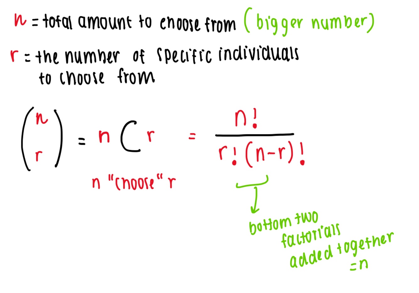 What is the formula for the number of combinations- without repeats?