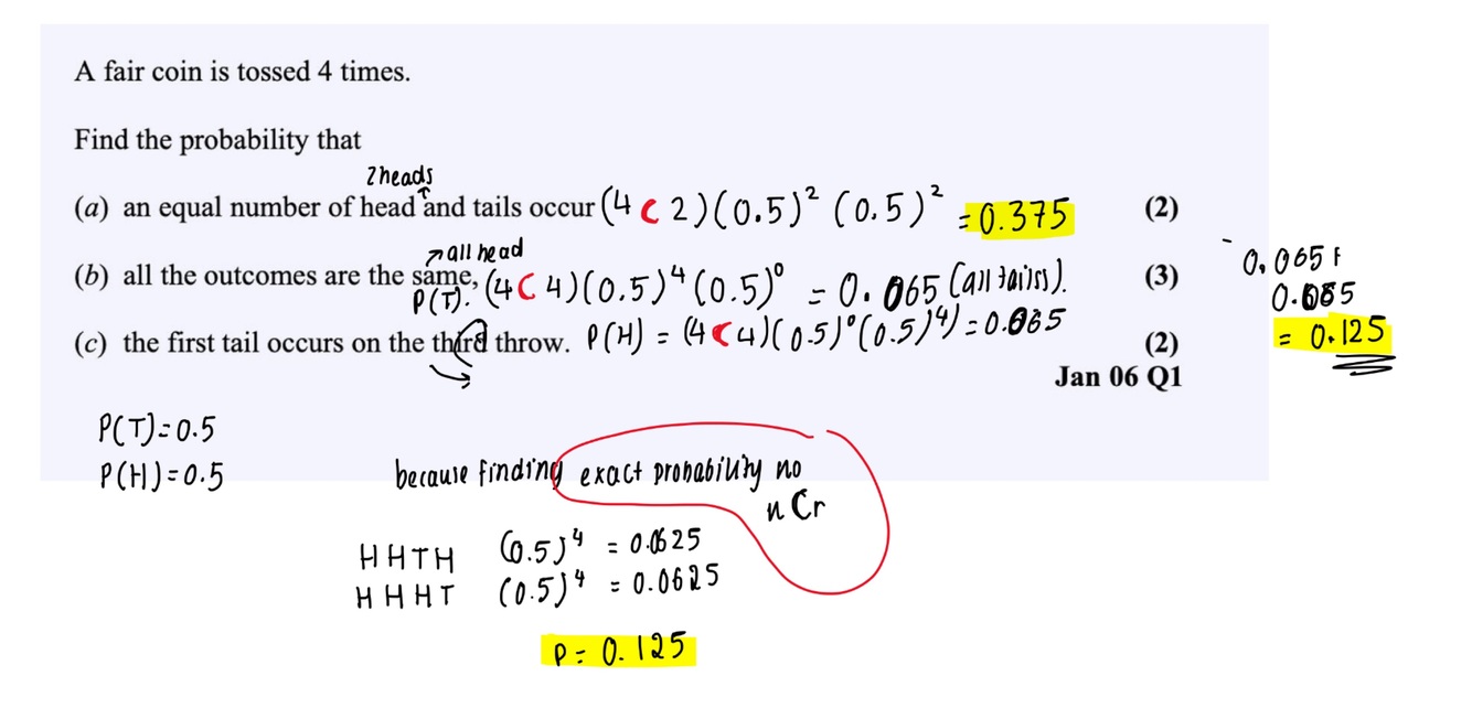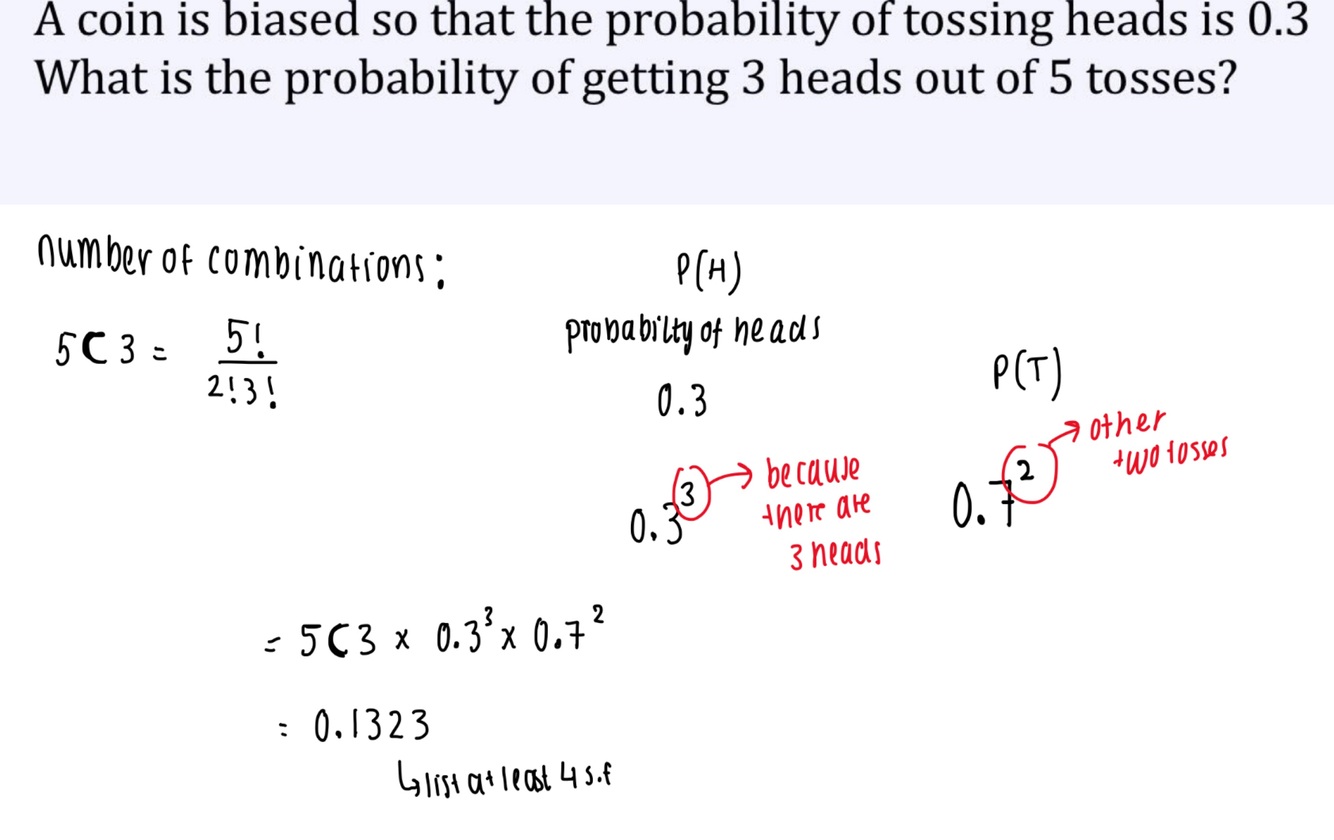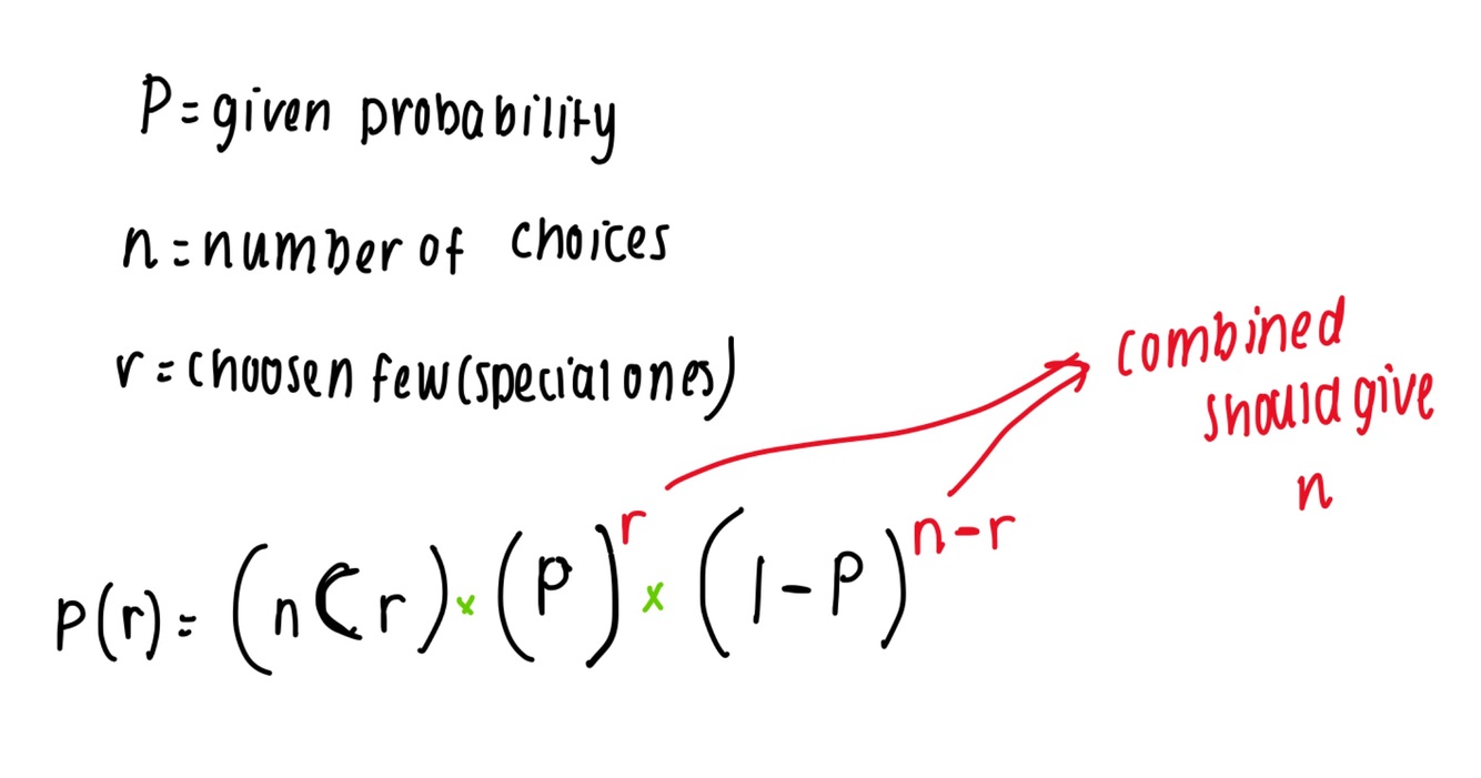What is the formula for probability of getting r out of n outcomes with a probability P?