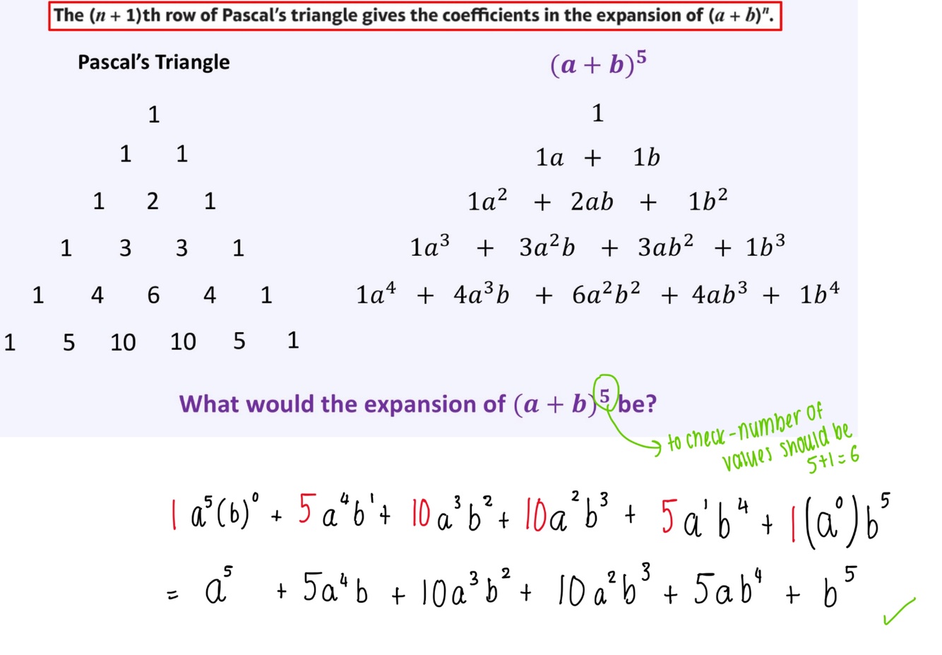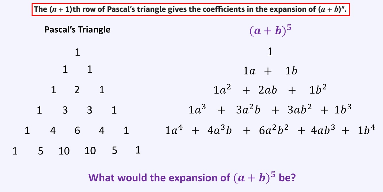 Draw the next expansion of (a+b) from pascalls Triangle