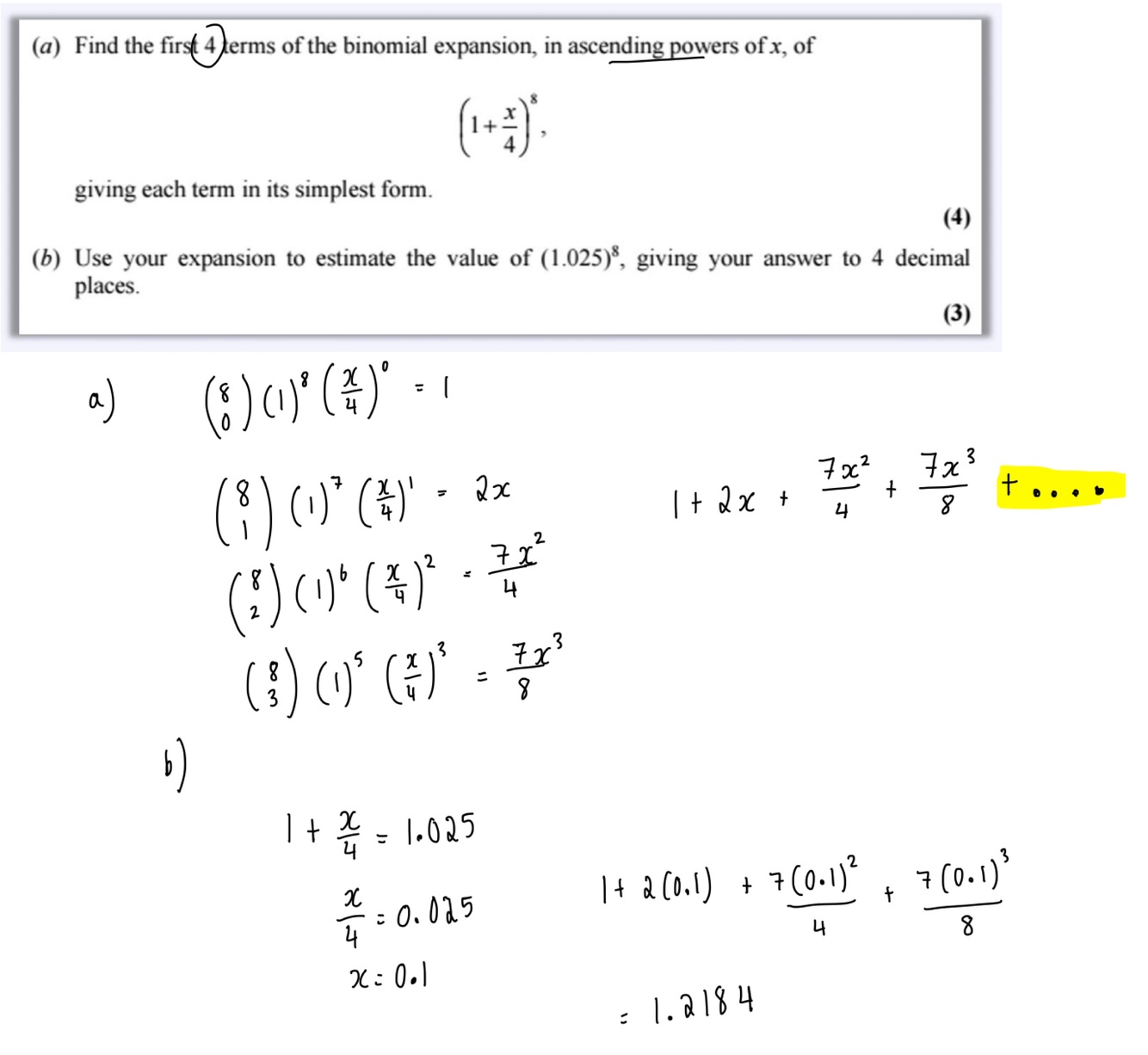 Why is only using the first 4 ascending powers of x a good estimate?