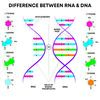 * DNA has **deoxyribose** sugar * RNA has **ribose** sugar ## Footnote DNA is double-stranded. RNA is single-stranded.