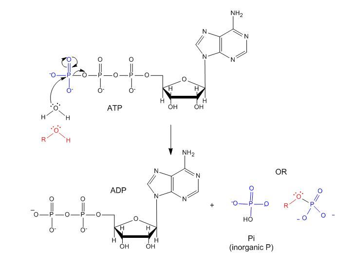 What is the mechanism of the hydrolysis of ATP?