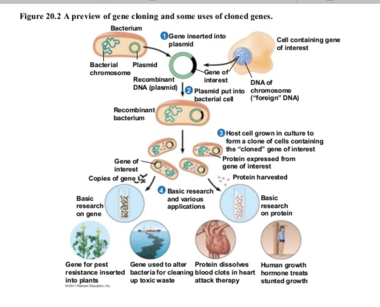 “carried by plasmids in cloned cells”= when you put a gene into a plasmid, cut plasmid with restriction enzyme cut gene with restriction enzyme and allow them to stick together/put together*