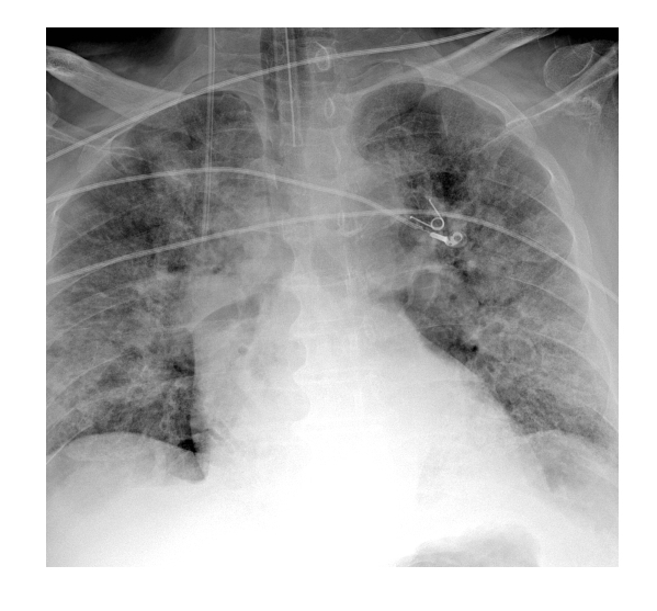 • clasically there is bilateral interstitial shadowing typical of viral pneumonia