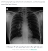 • takes a long time to resolve - may have persistent shadowing/ fibrosis