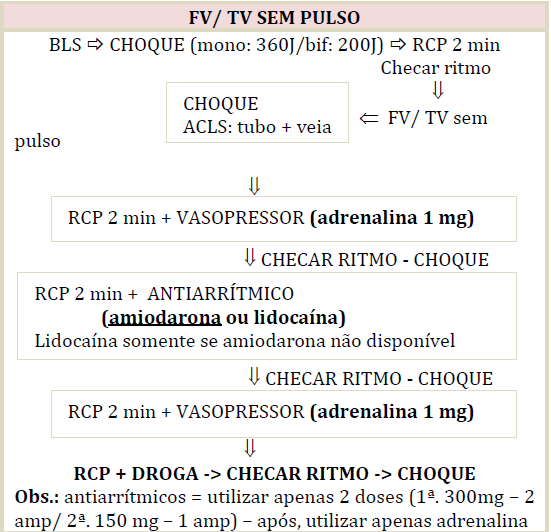 Qual a sequência de atendimento da RCP em caso de FV/TV SEM PULSO?