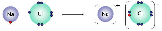 Ex: The classic example is an “ionic salt” like NaCl. Sodium transfers its electron to chlorine.