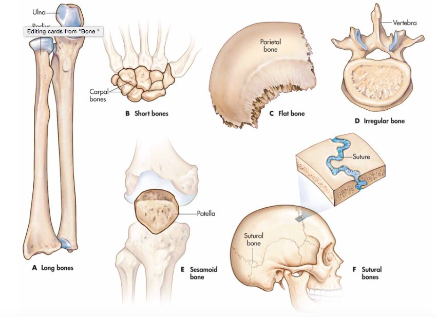 Give the 5 classifications of bone by shape