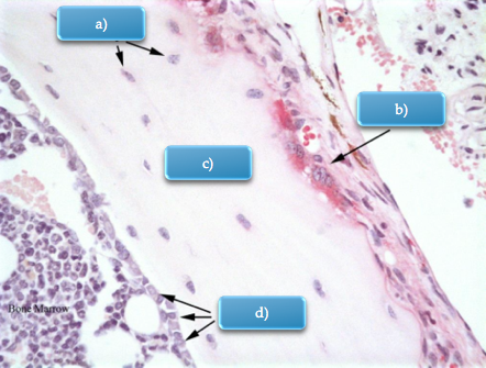 Lining cells - difficult to see, flattened and line the bone