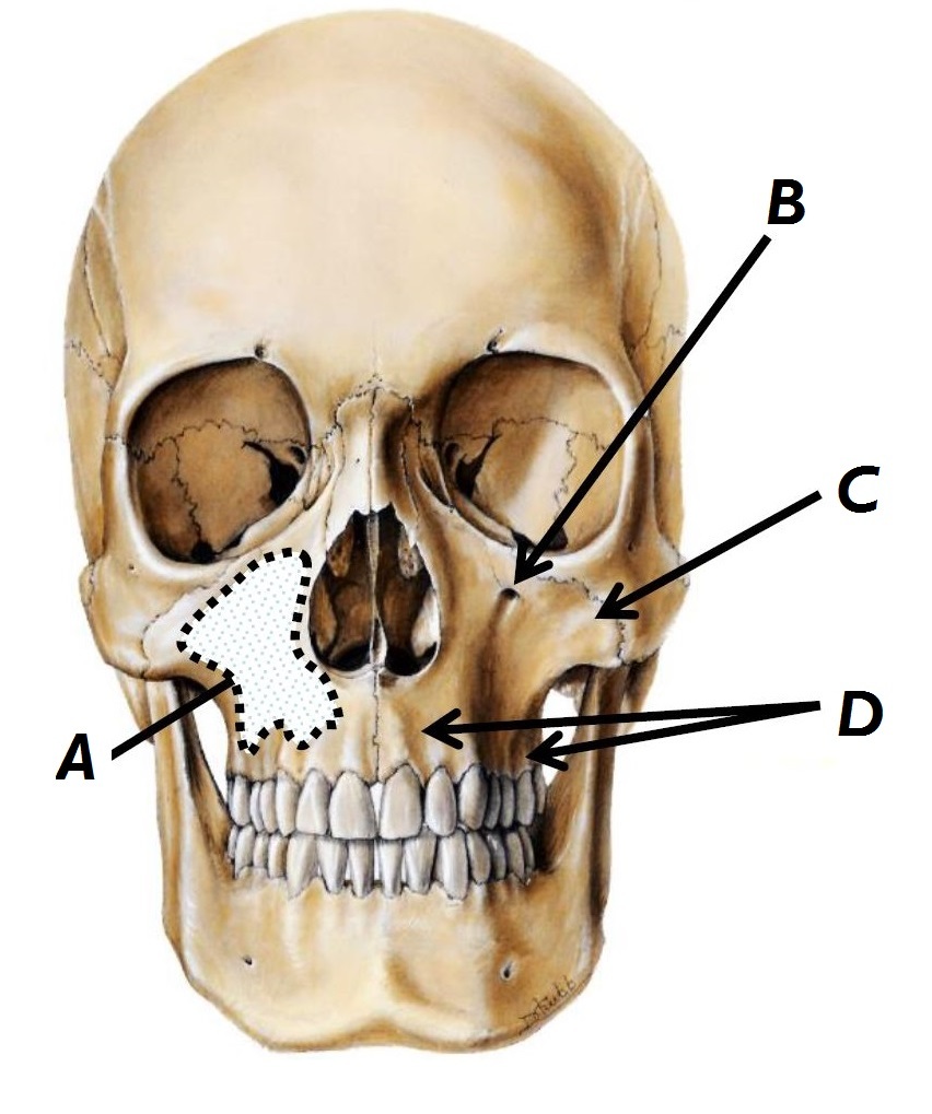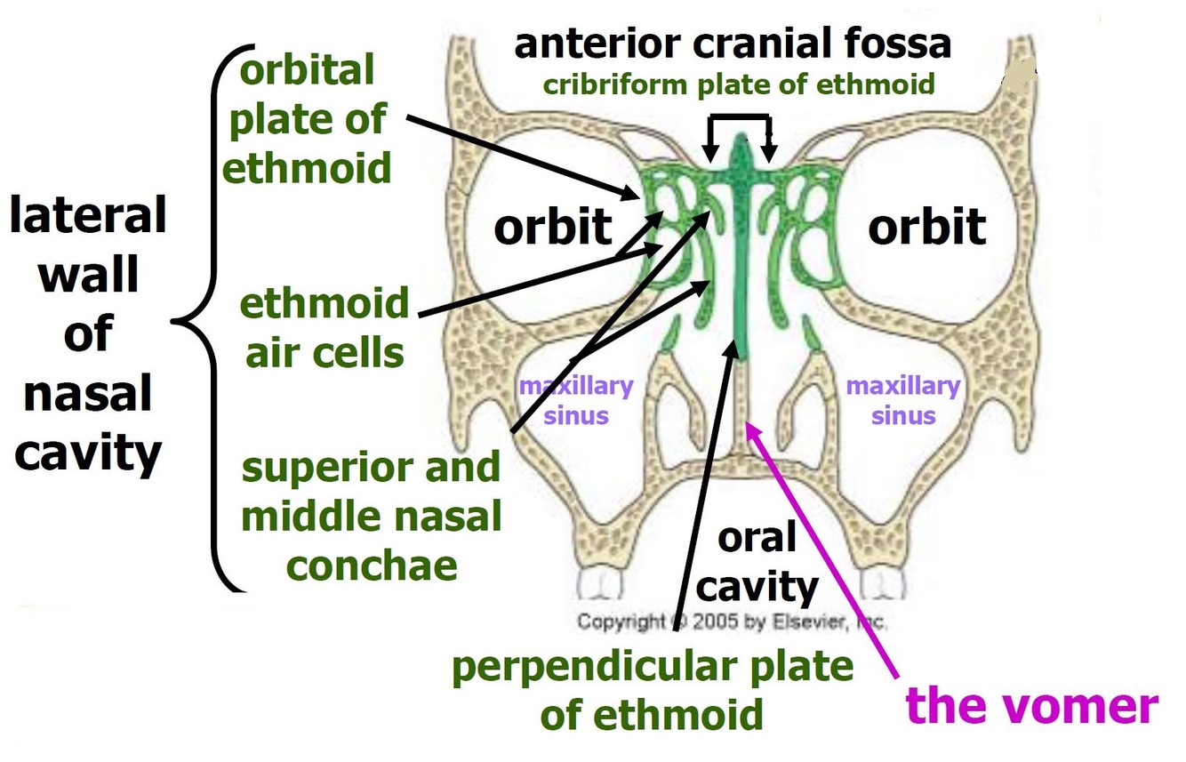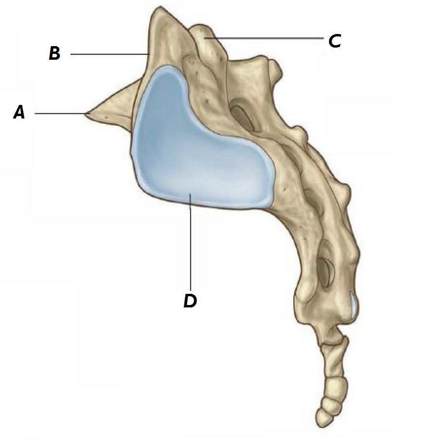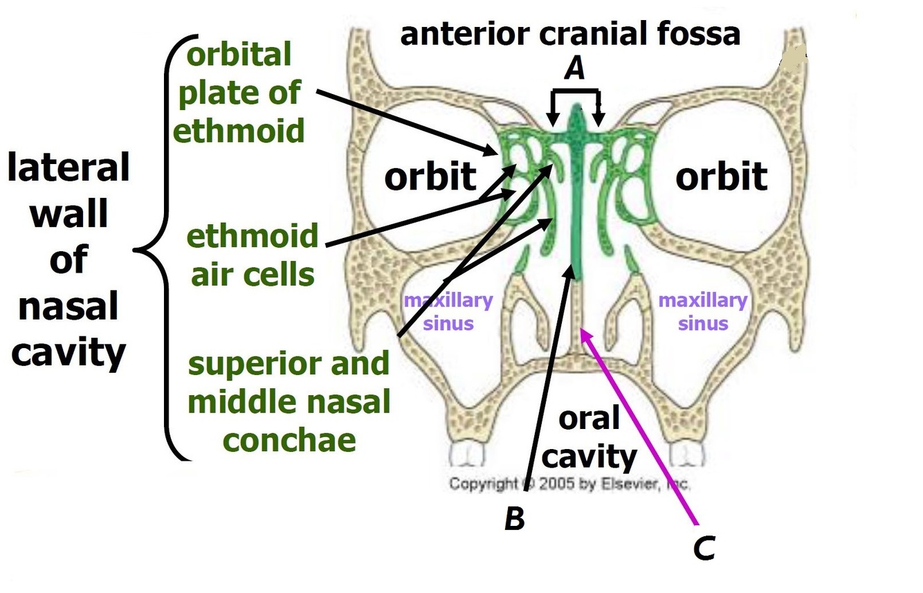 Name parts A and B of the ethmoid bone, and C an associated bone