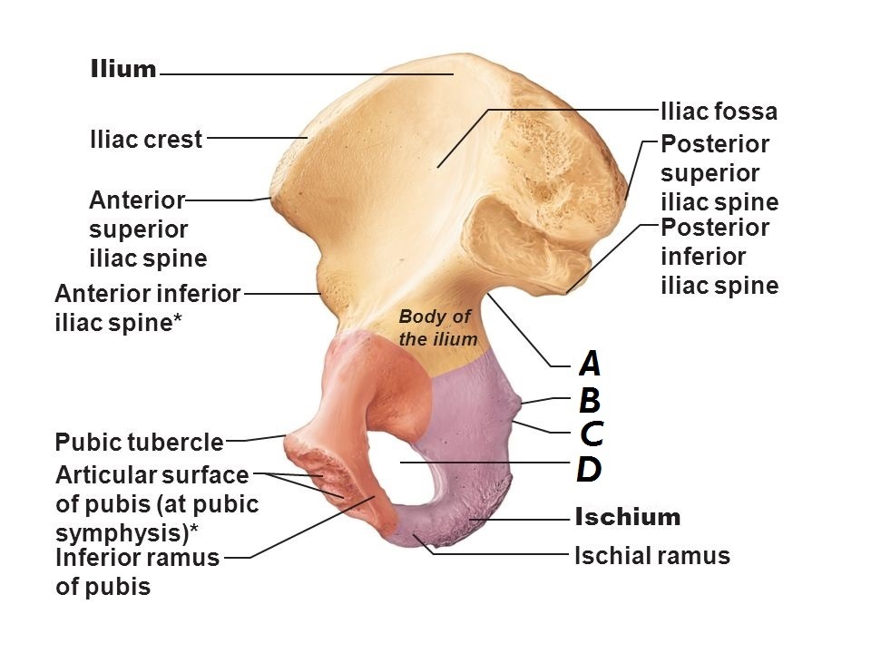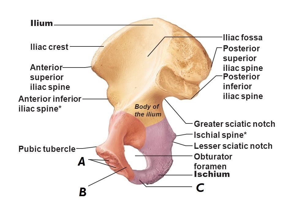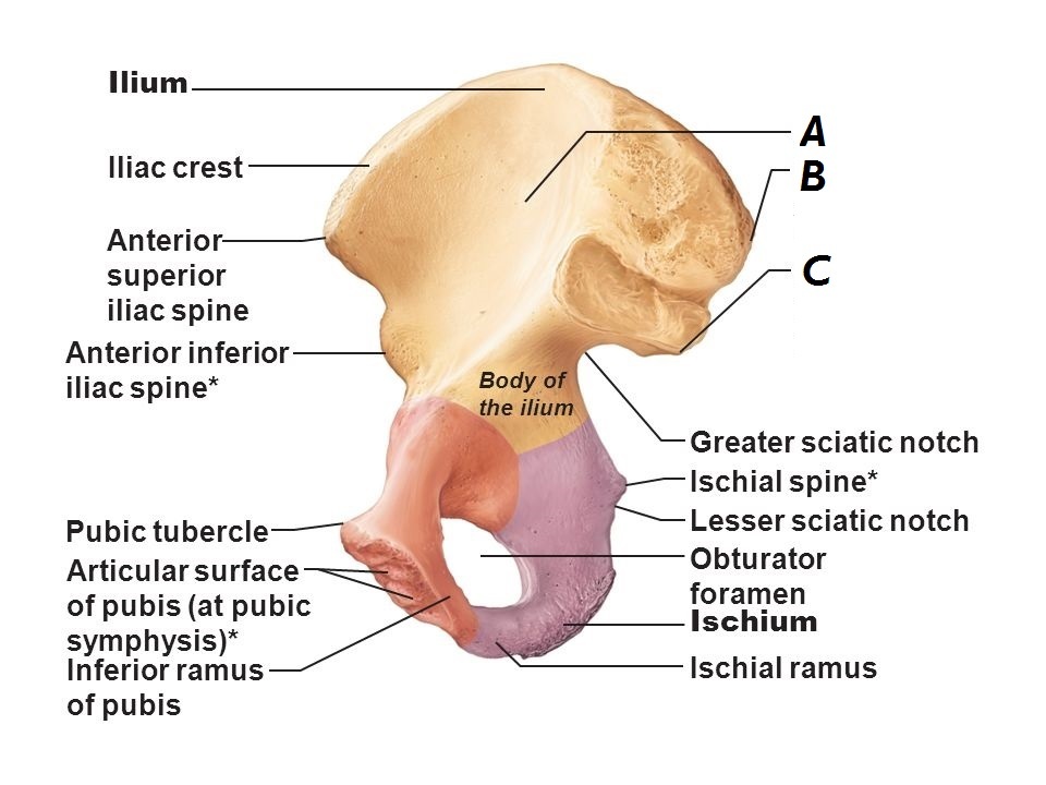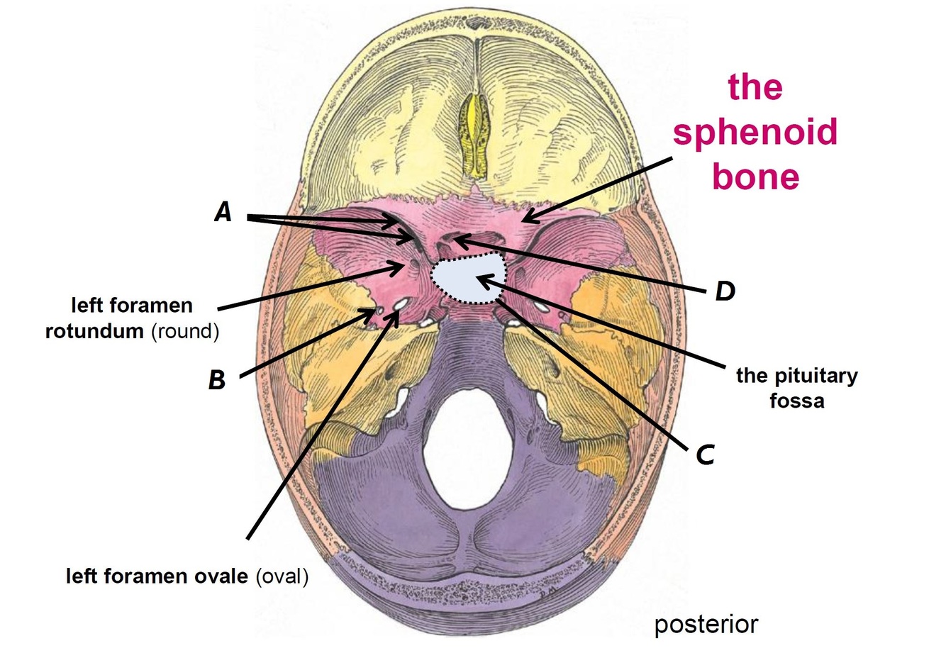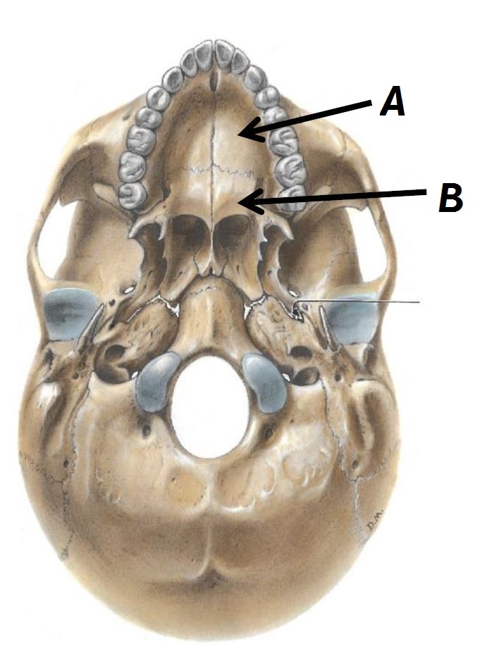 Name parts A and B of the ethmoid bone, and C an associated bone