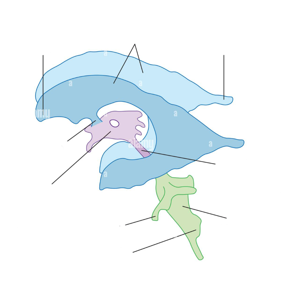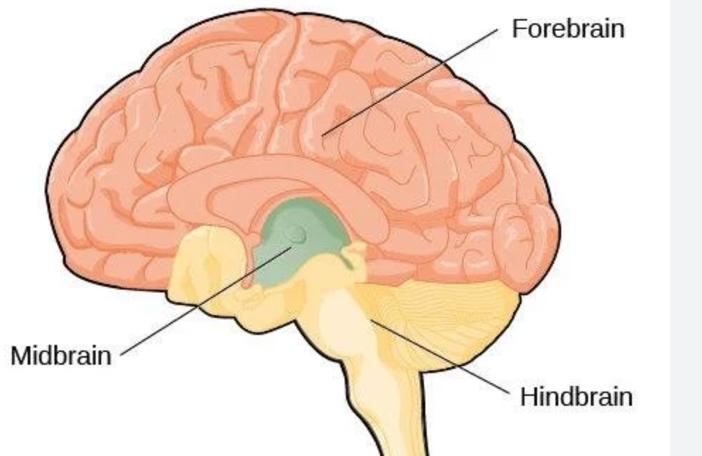label the: forebrain; midbrain; hindbrain