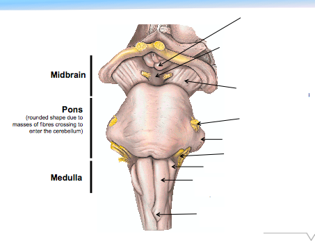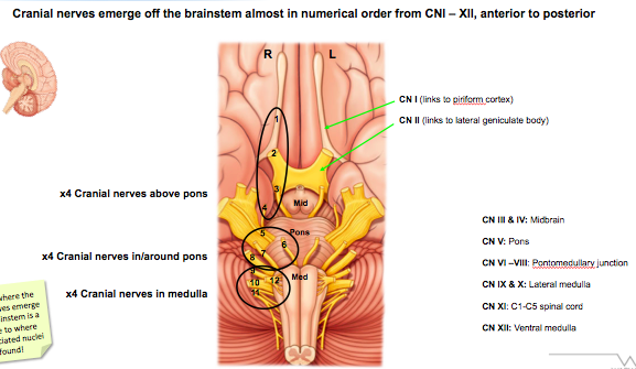 • Generally location of where the cranial nerve arises off the brainstem indicates its position within the brainstem.