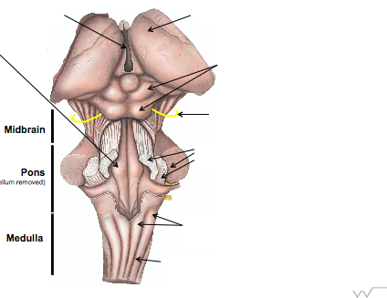 • Superior cerebellar peduncle- connects cerebellum to the midbrain