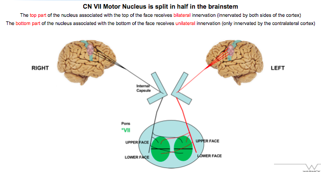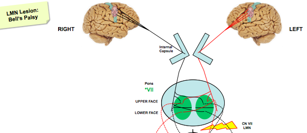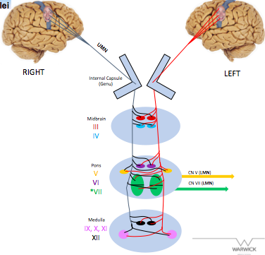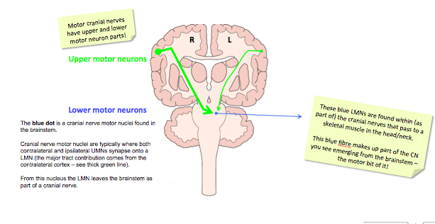 • CN motor nuclei are controlled by an UMN that comes from the primary motor cortex and synapse with a LMN within the cranial nerve nucleus.
