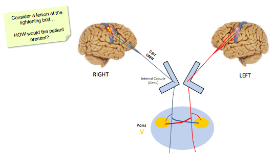 * Also need to consider other smaller, relevant cranial nerves that leave the brainstem at these levels: * Lateral medulla infarction - CN IX , X, XI * Lateral pontine infarction - CN V- VIII