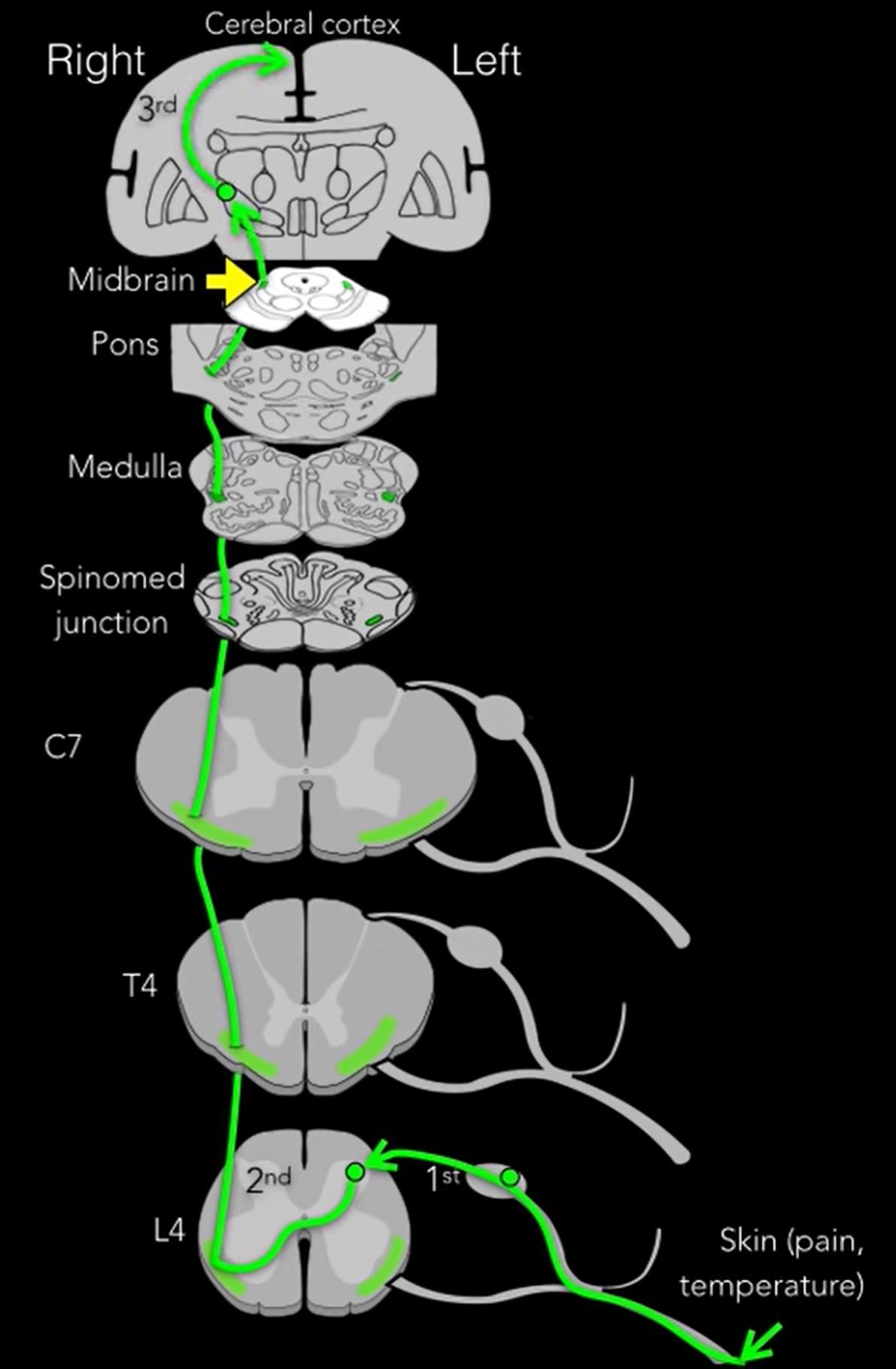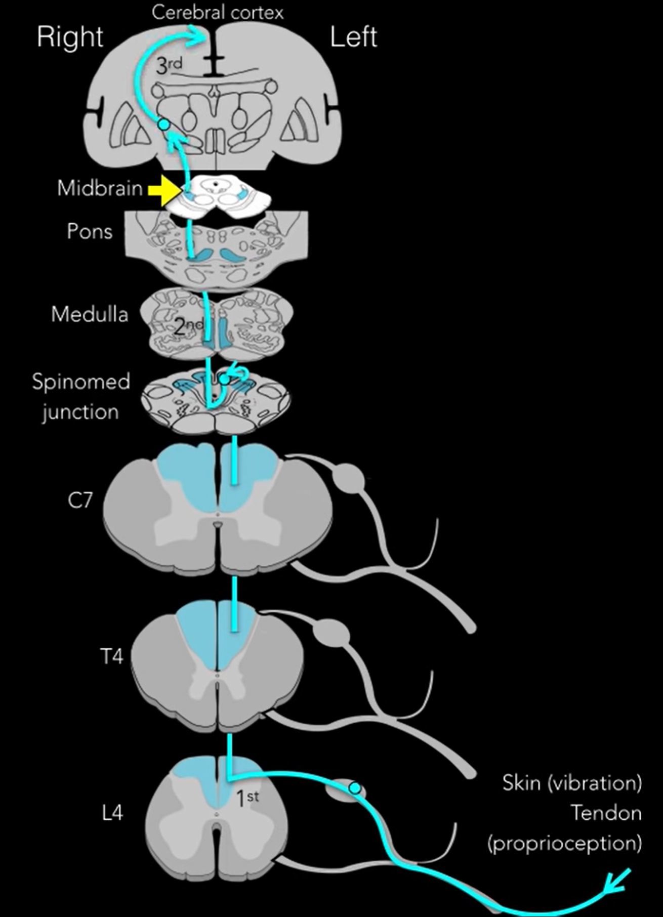 Dorsal column tract/medial lemniscus at all layers of spine and brainstem