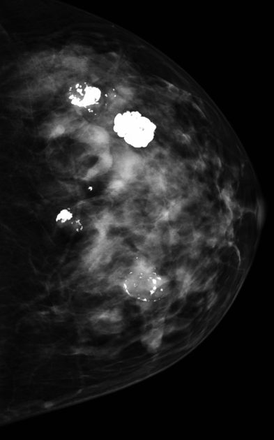 Popcorn calcs in a degenerating fibroadenoma.