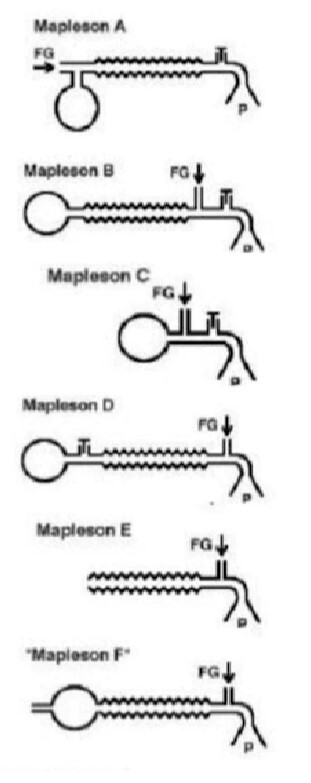 classification of semi-open breathing systems. labelled A to E, later F was added as the jackson rees modification.