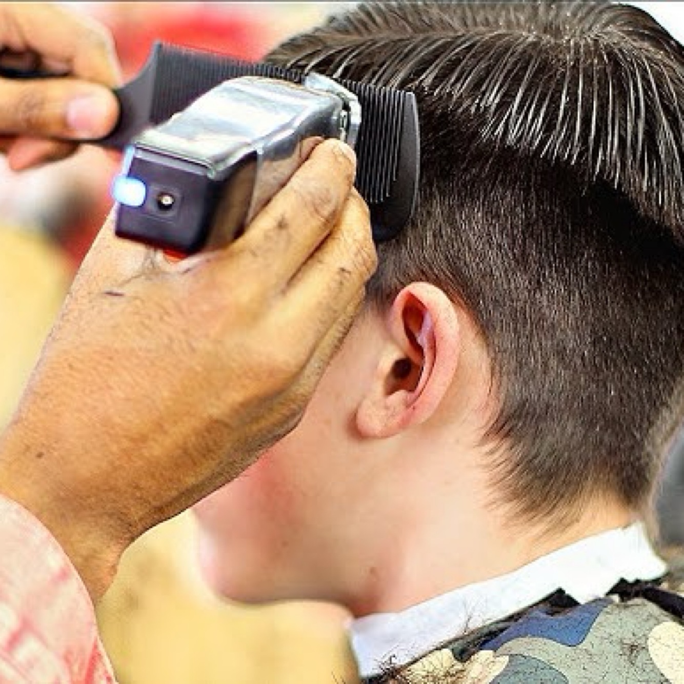 The cutting over a comb with the clippers.