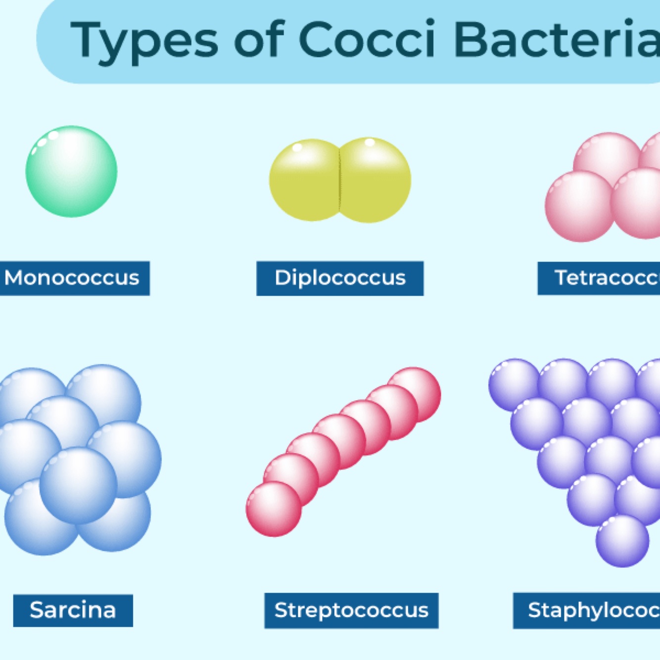 Round-shaped bacteria that appear singly or in groups.