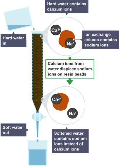 Why can (both types of) hard water be softened using an ion-exchange resin?