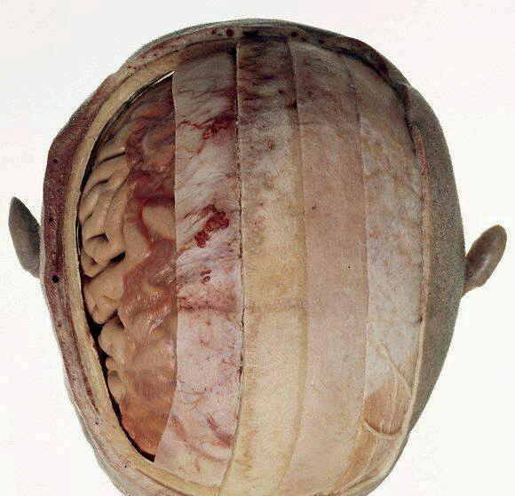 SCALP S: Skin C: Close subcutaneus tissue (Tela subcutânea densa) • Camada adiposa avascular • Camada membranácea vascular A: Aponeurotic e m. occipitofrontal (Gálea Aponeurótica) L: Loose subaporeutic tissue (Tecido subaponeurótico frouxo) • Permite deslizamento das camadas superiores • Veias emissárias P: Pericrânio