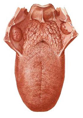 Insere-se: • Hióide • Mandíbula • Processo Estilóide • Faringe É dividida em raiz, corpo e ápice Face superior (dorso) • Sulco terminal da língua • Forame cego Parte Oral • Sulco Mediano Parte Faríngica • Tonsilas Linguais • Prega Glossoepiglótica Mediana • Prega Glossoepiglótica Lateral • Valécula Superfície Inferior • Frênulo da Língua • Mucosa permeável • Óstio do ducto submandibular: Carúncula lingual Raiz: • Ausência de membrana mucosa • Acesso dos V.v. e N.n