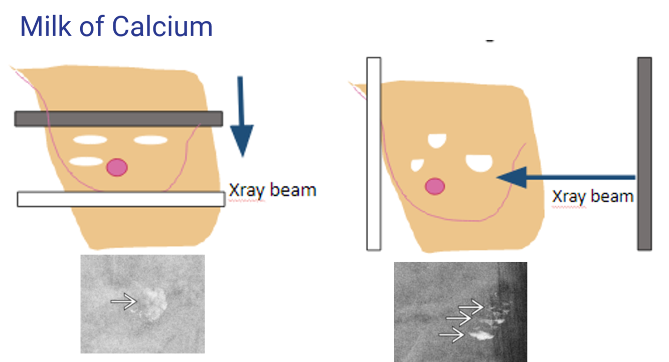 What view is most important when evaluating calcs though to represent milk of calcium?