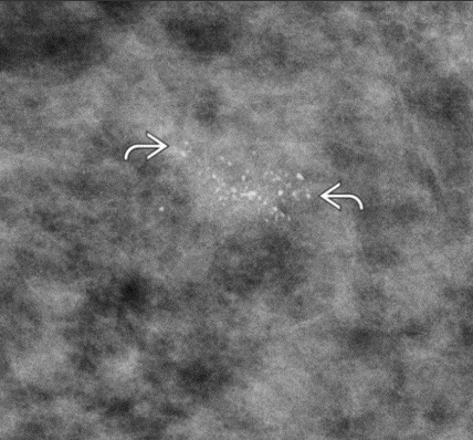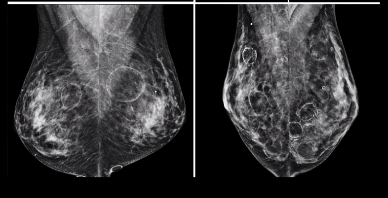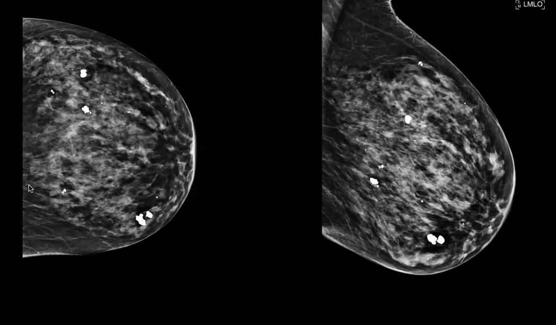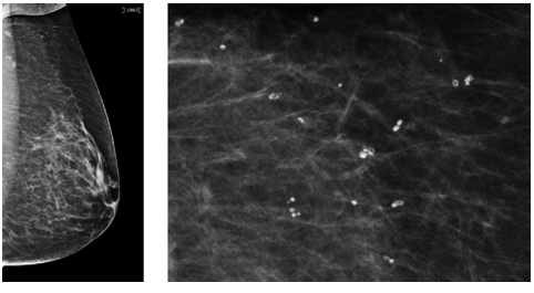 BR-2. multiple popcorn (dystrophic) calcs = multiple degenerating fibroadenomas