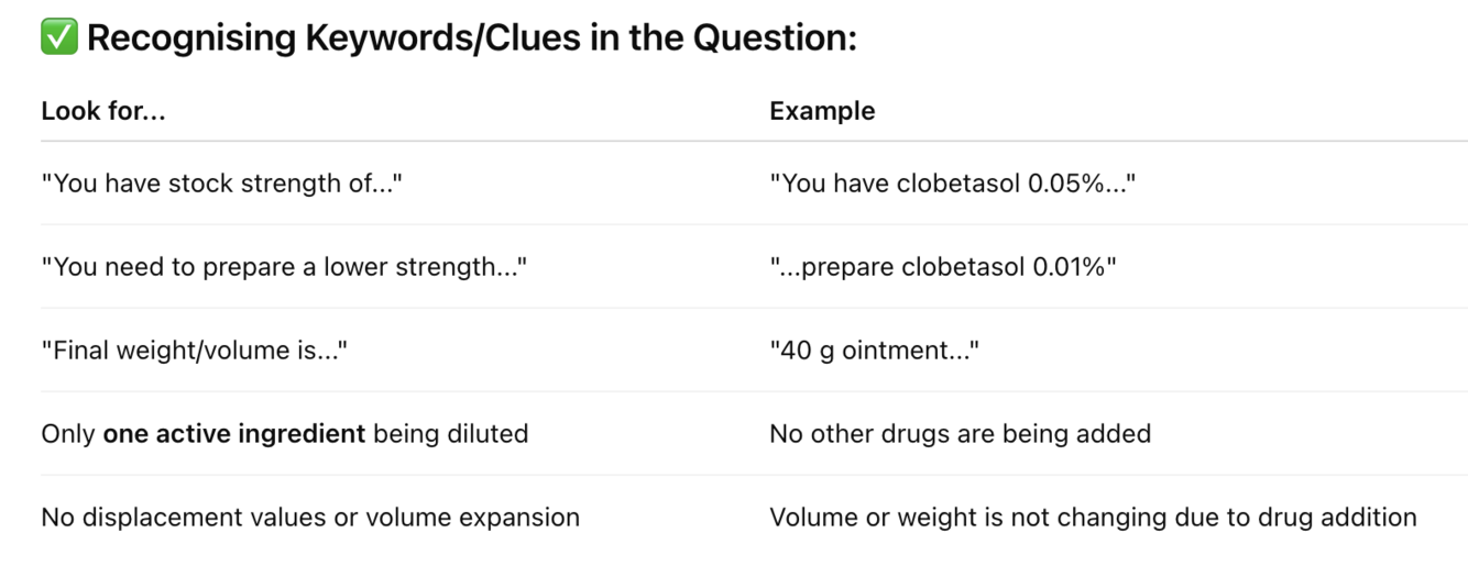 ✅ Tip: If the only variable is changing the concentration of the same drug, and the total volume/weight is fixed, you can almost always use: