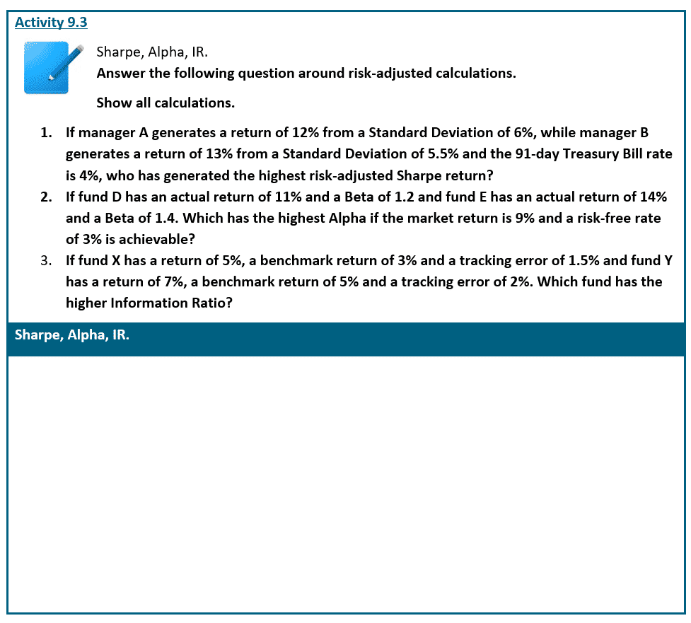 Calculate ‘expected return’ using CAPM formula, then deduct this from the actual return