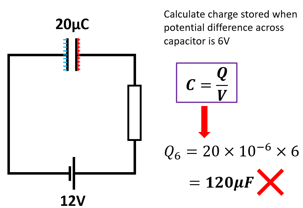 C = capacitance → not the charge!!!