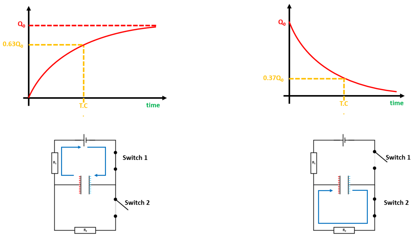 Read off time when charge (or current or voltage) has increased to 63% final