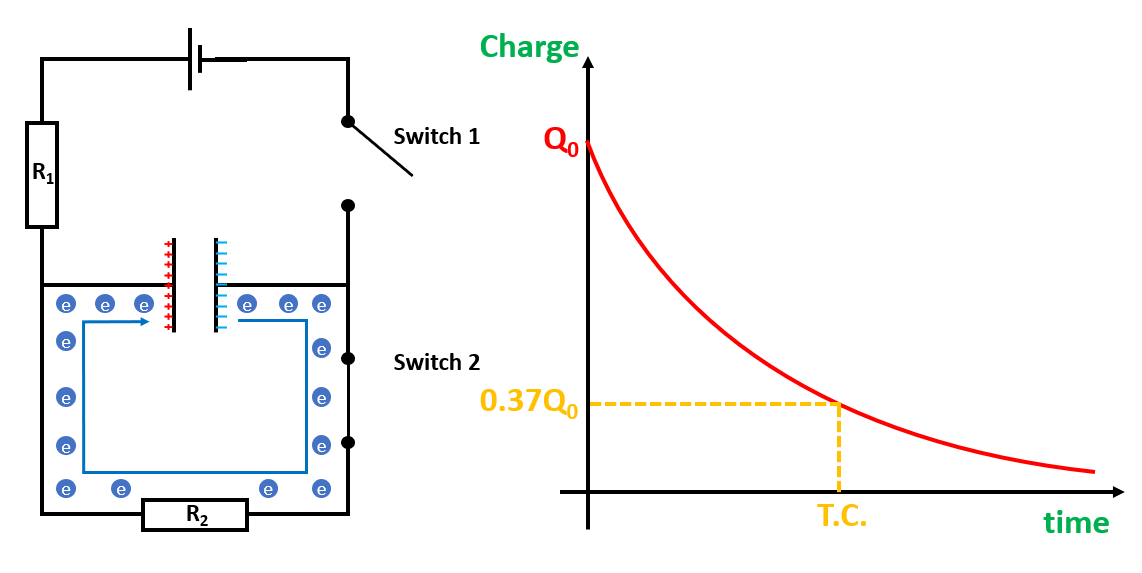 Read off time when charge (or current or voltage) has decreased to 37% initial