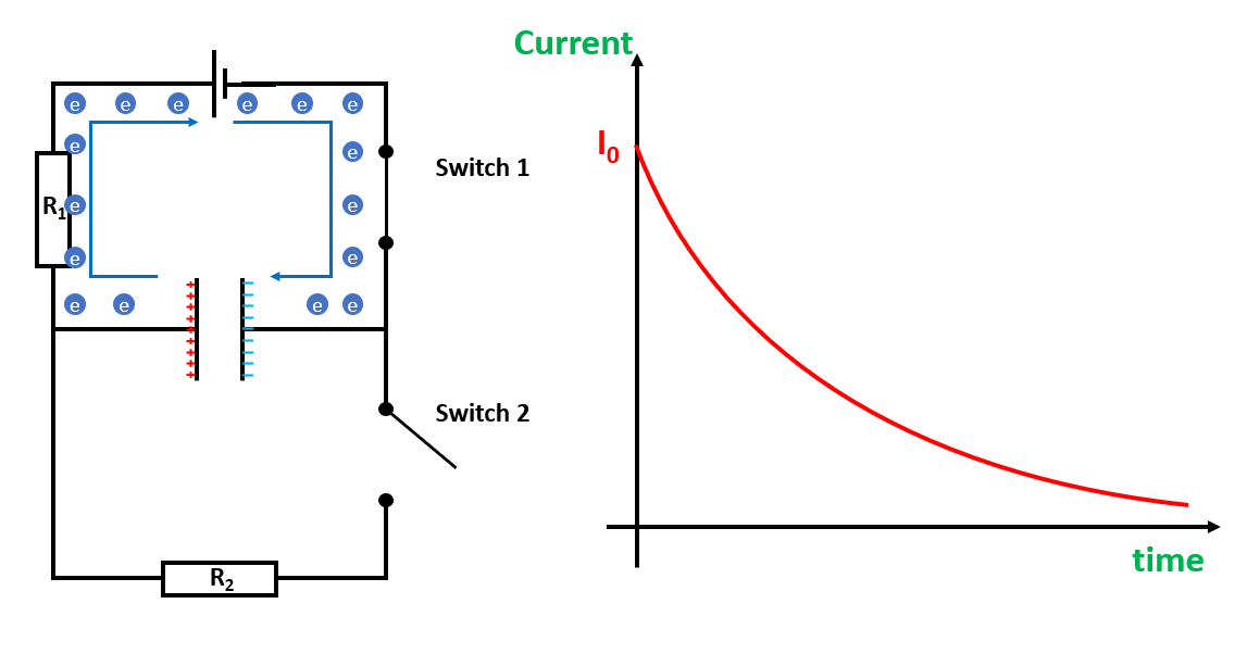Explain why the I-t graph is exponential when a capacitor discharges