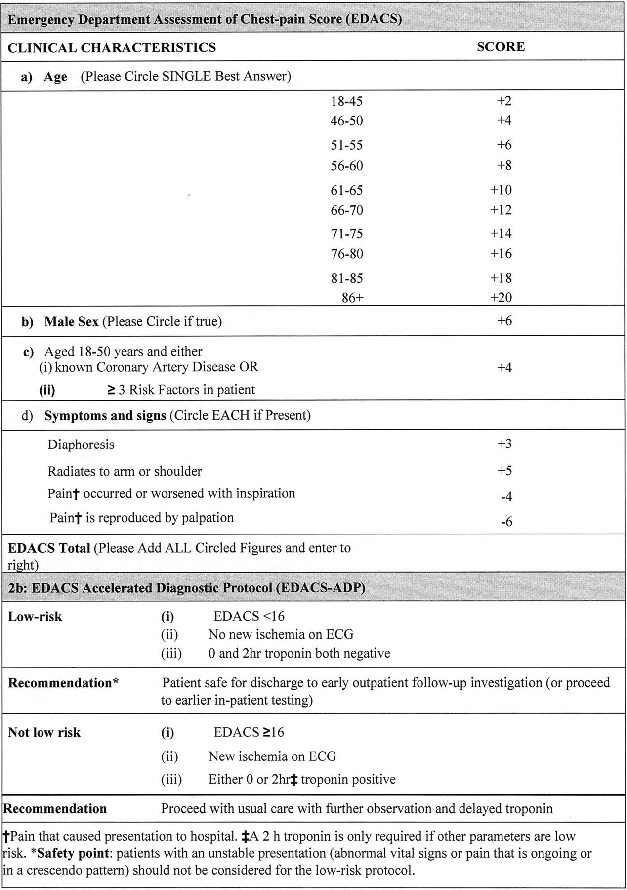 Clinical tool to identify WHO can have a 0 and 2hr ECG troponin to investigate for ACS (instead of 0 and 6hr).
