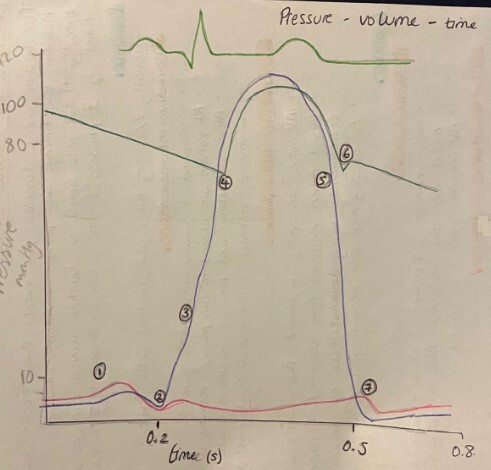 draw a pressure - time curve to describe valvular changes and events during cardiac cycle…