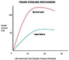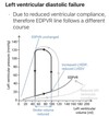 can see gradual increase in EDV without significant increase in pressure and this allows for SV to be matched. eventually theres a sharp rise. The steeper the gradient, the less compliant the heart, i.e. HTN, cardiomyopathy