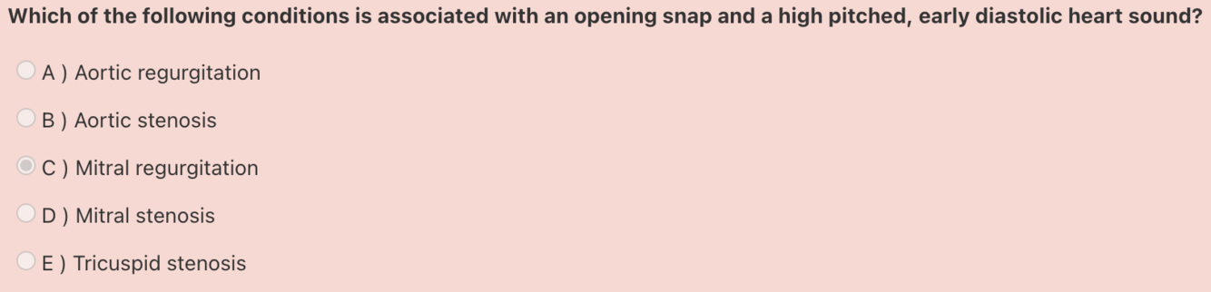 An opening snap is a high-pitched sound that occurs in mitral stenosis