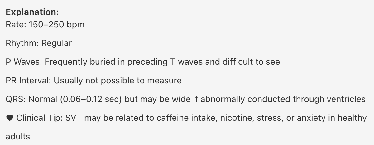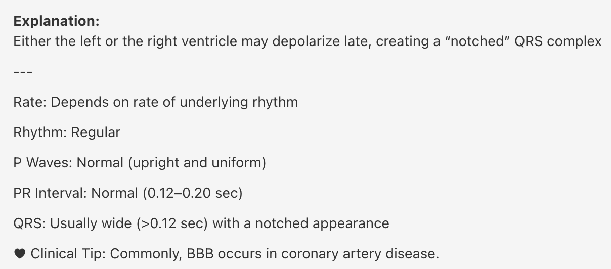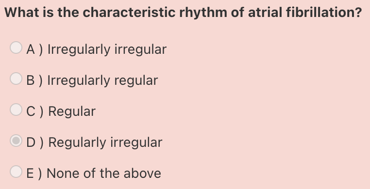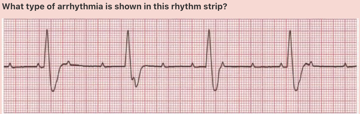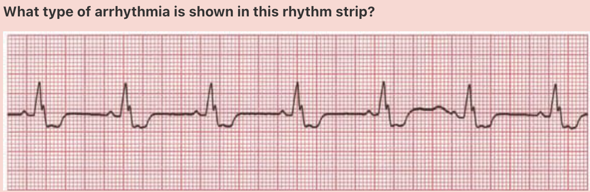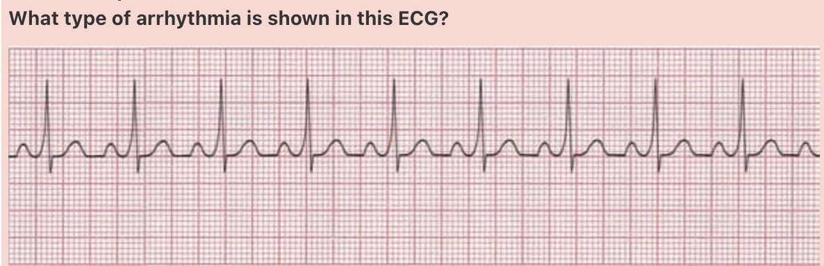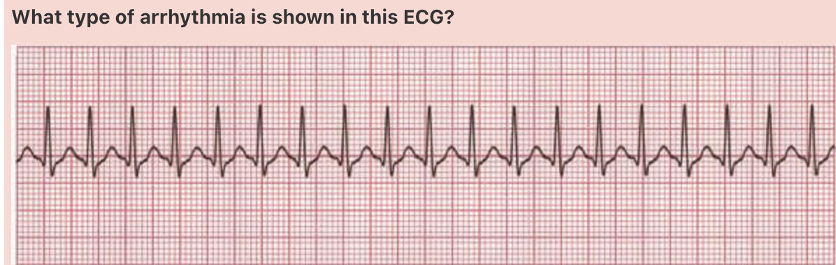 Note the presence of a U wave, with the associated flattened T wave. The merging of the T wave and the U wave is often misinterpreted as a prolonged or wide QRS; don’t fall for this common student trap! Also note the depressed ST segment, especially marked in Lead II. Causes of hypokalaemia include anorexia, chronic alcohol use, gepphagia, alkalosis, and thiazide/loop diuretics (among others).