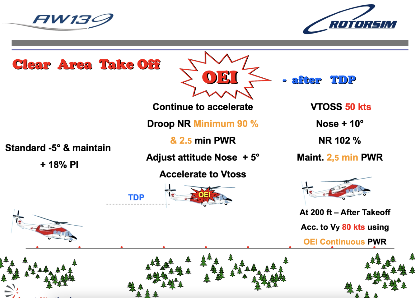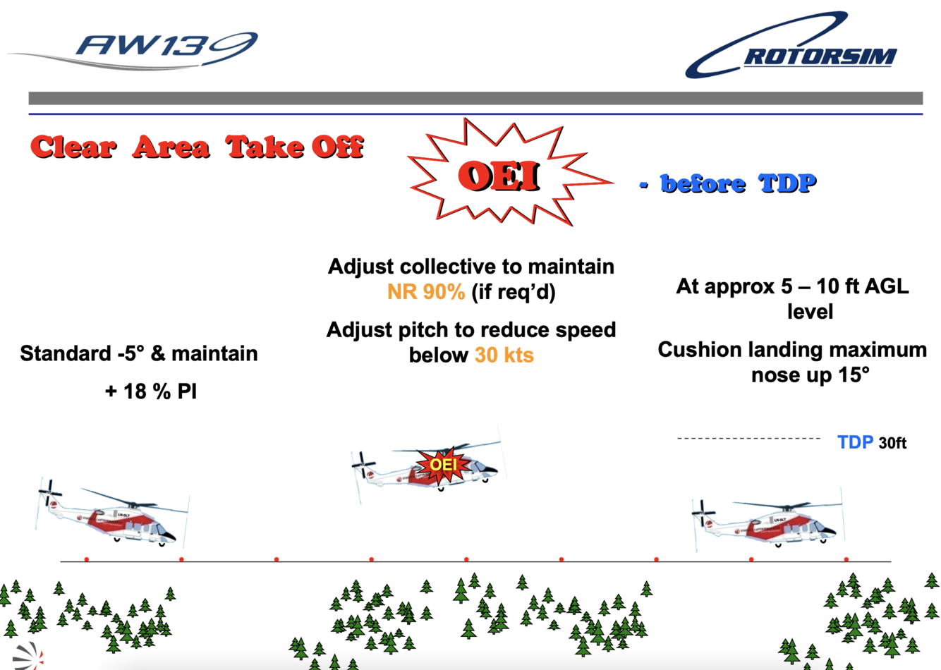 describe OEI during Clear area departure before TDP with speeds, altituds and NR
