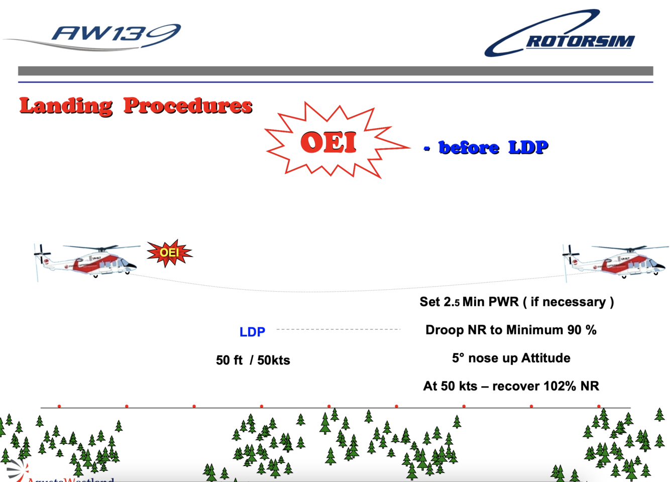 describe OEI during Clear approach before LDP with speeds, altituds and NR