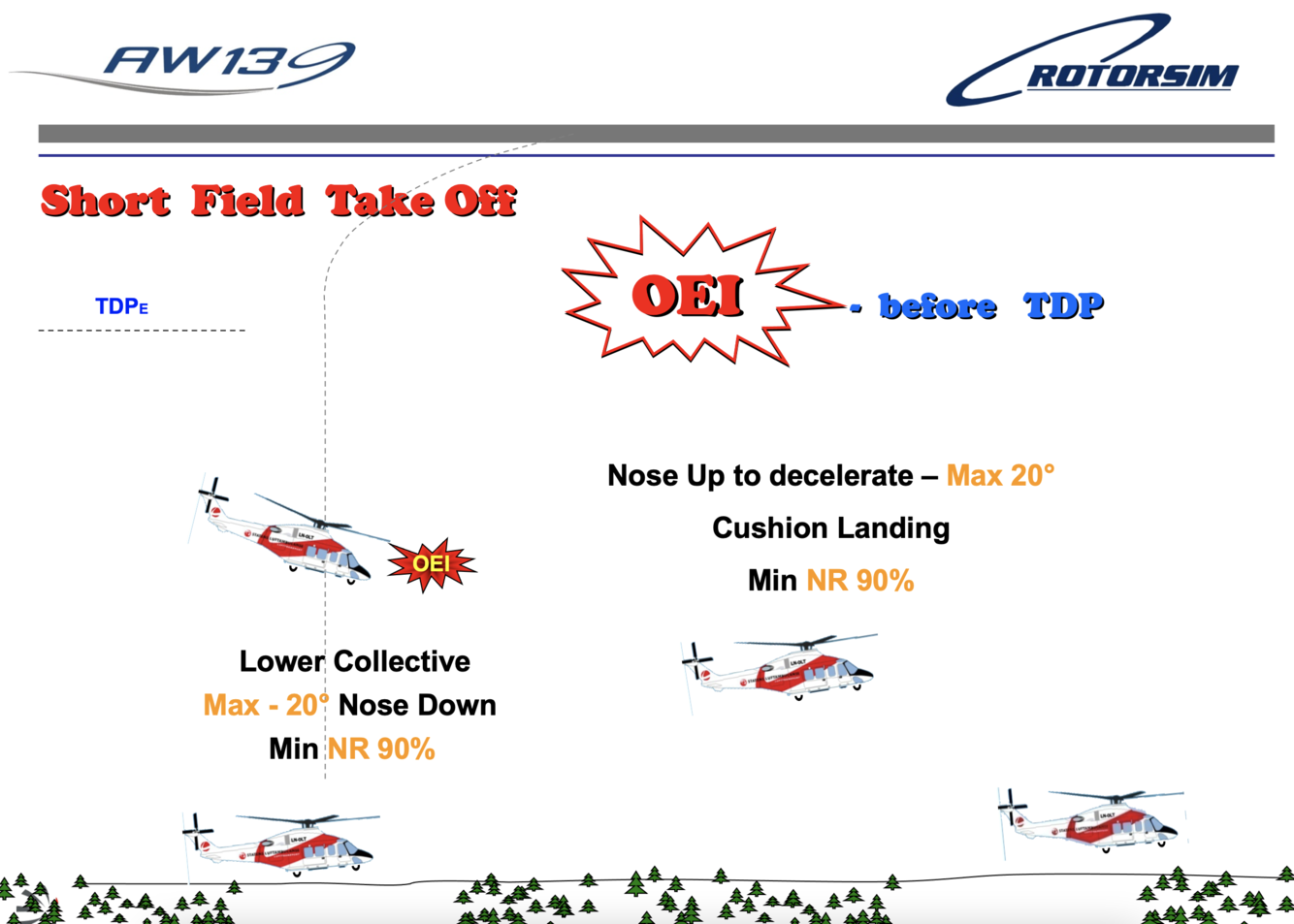 describe OEI before TDP on short field T/O with speeds, altituds and NR