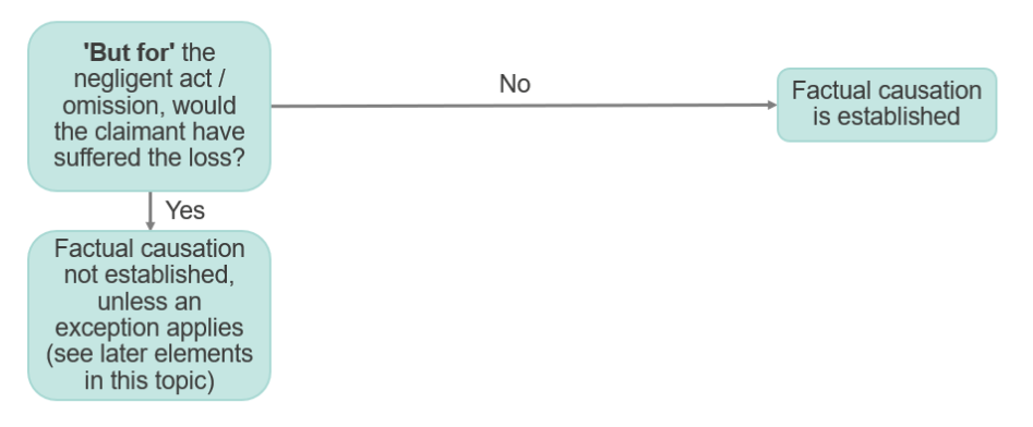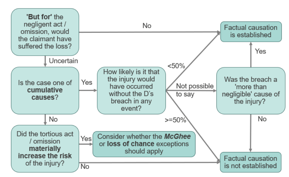 The ‘but for’ test: on the balance of probabilities, but for D’s breach of duty, would C have suffered their loss at that time in that way?