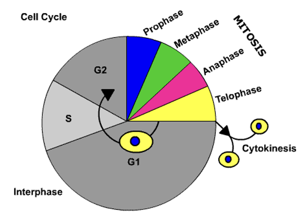 G1 phase- Cell increases in size and new biomass is made