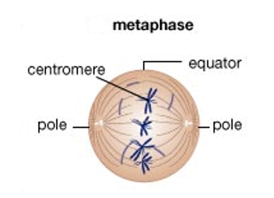 3) the chromosomes align down the equator of the cell.