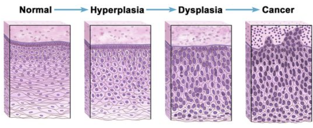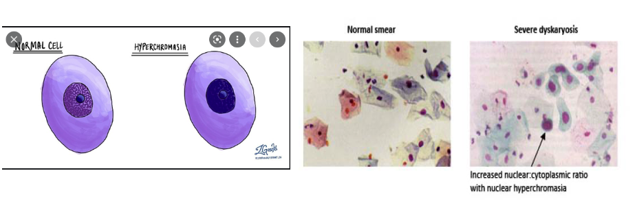 1 - change in cervical cells appearance, increase cytoplasmic:nuclear ratio, hyperchromatic