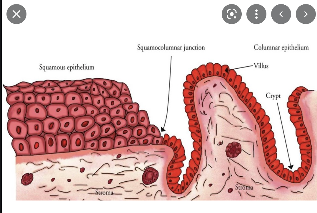 The basic cell type of the endocervix is columnar epithelial cells that secrete mucus. What happens to the columnar epithelial cells if they are exposed to the acidic pH of the vagina?